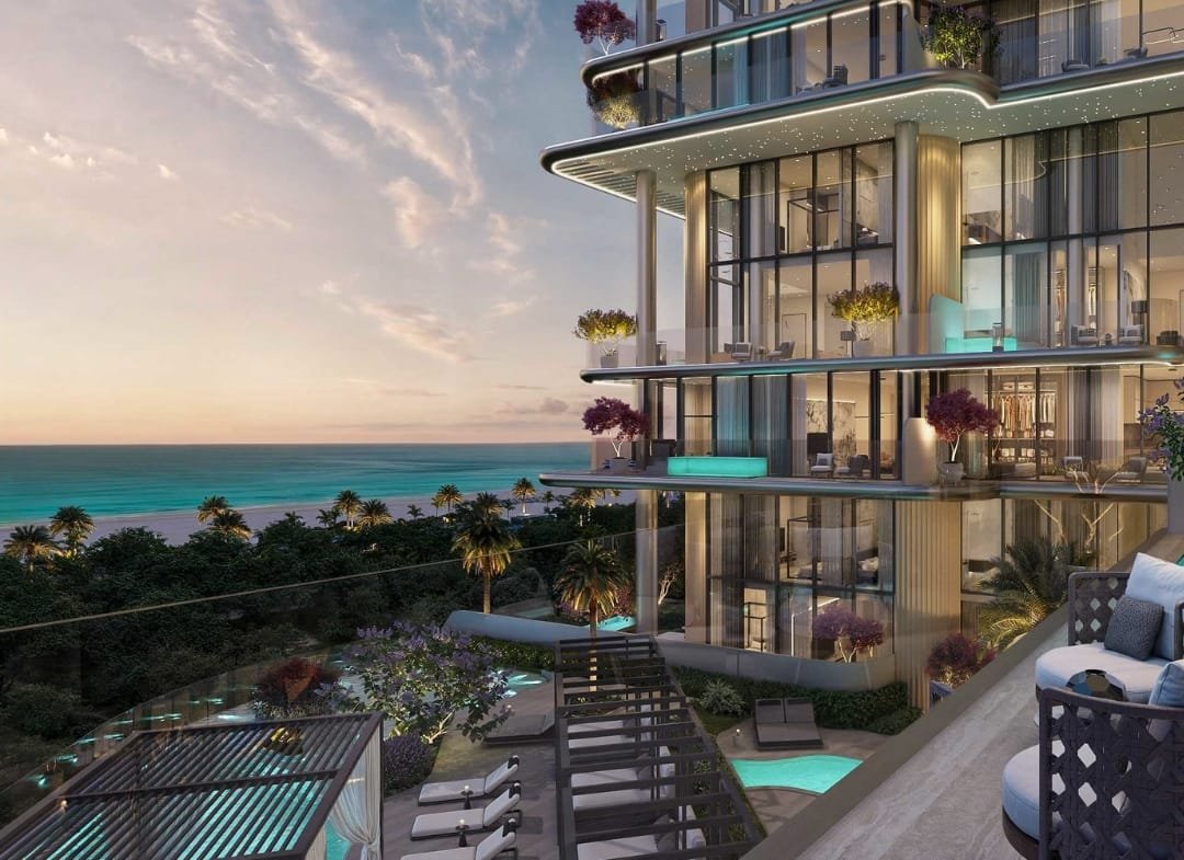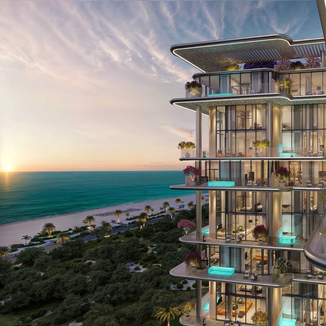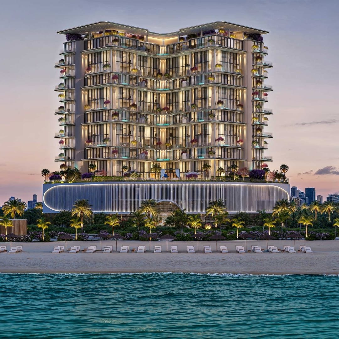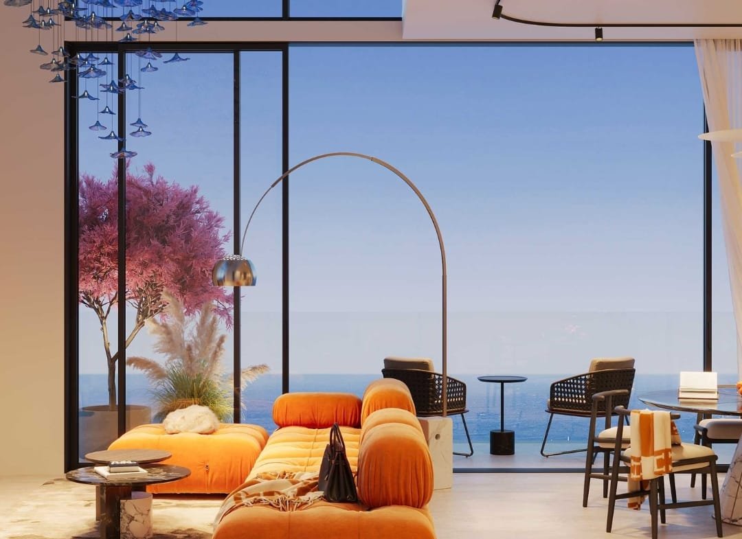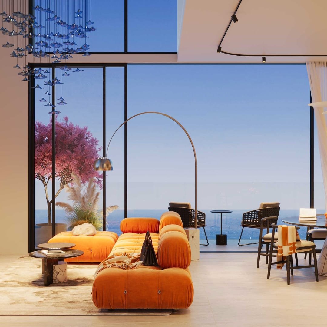 Residents will enjoy access to luxury amenities including a private beach club, cabanas, two infinity-edge pools, a fully equipped Technogym fitness centre, and a designer clubhouse. The grand lobby is curated with statement pieces by Cassina, Minotti, and illuminated by FLOS, Tom Dixon, and ZONDA lighting.
