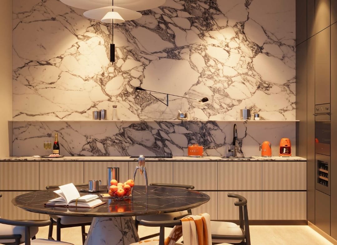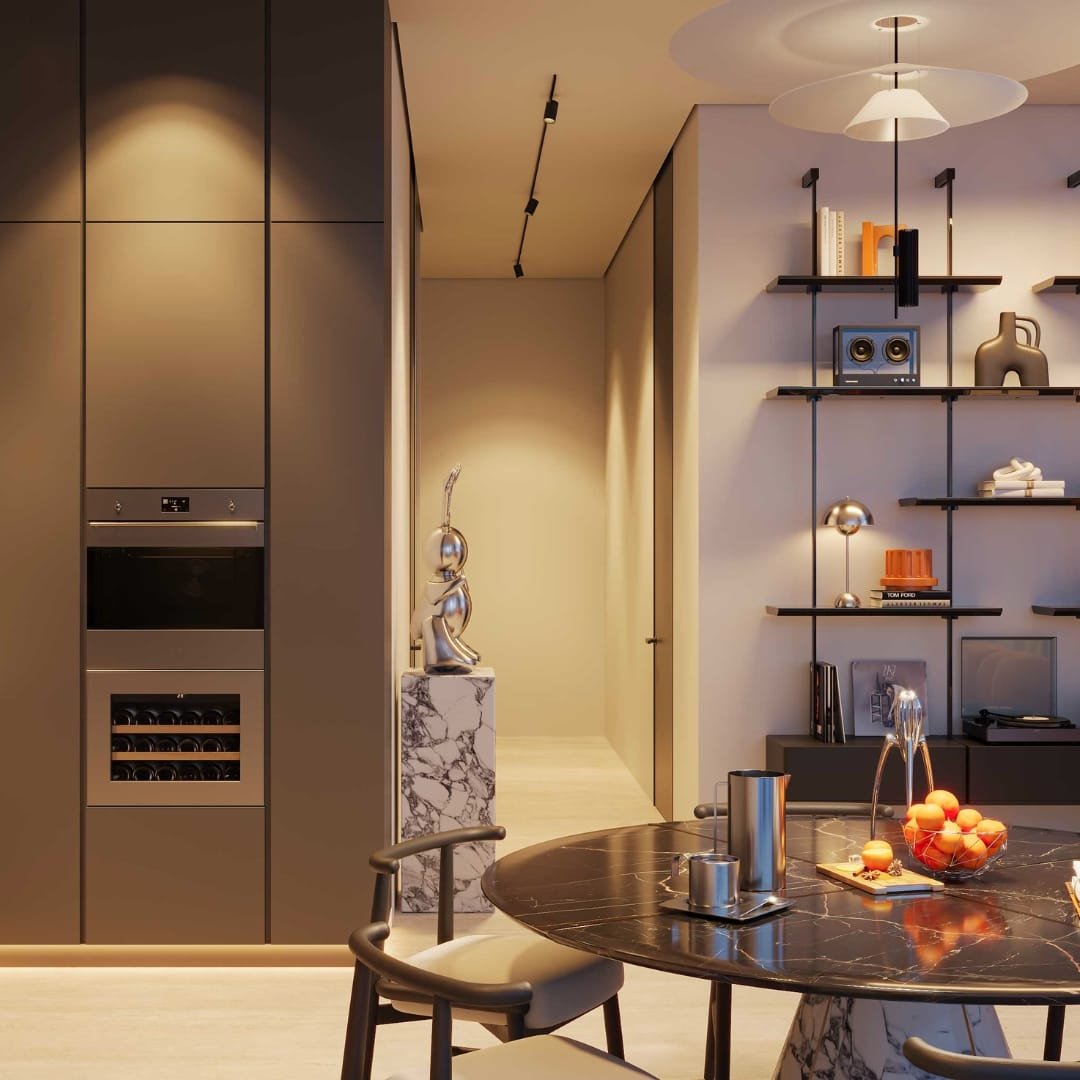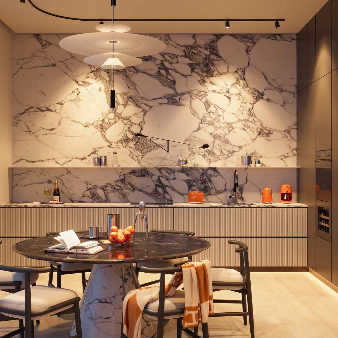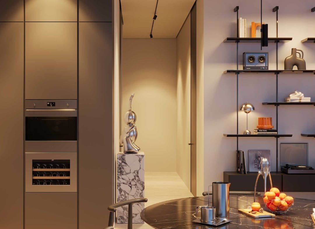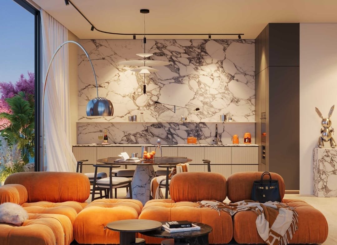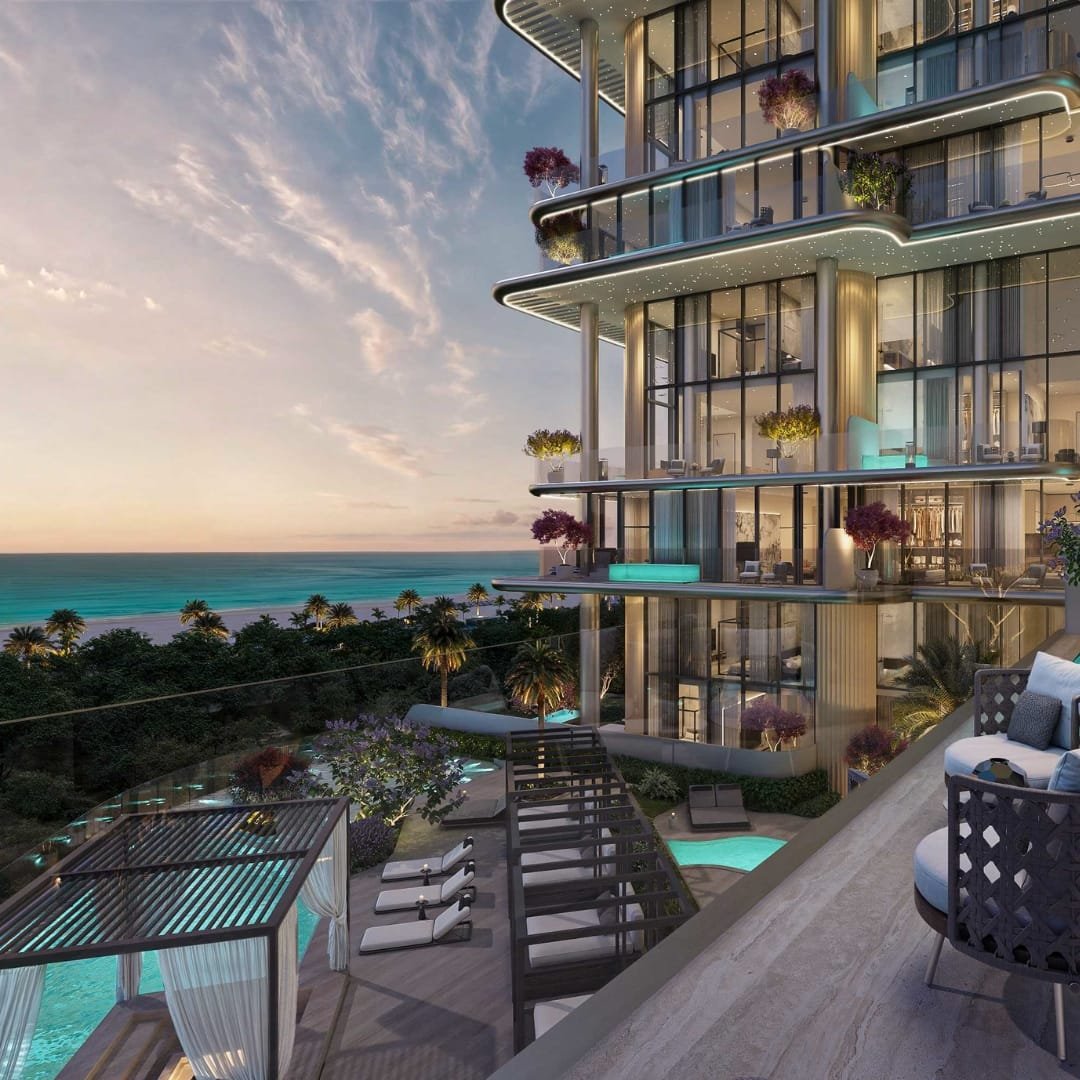 Residents will enjoy access to luxury amenities including a private beach club, cabanas, two infinity-edge pools, a fully equipped Technogym fitness centre, and a designer clubhouse. The grand lobby is curated with statement pieces by Cassina, Minotti, and illuminated by FLOS, Tom Dixon, and ZONDA lighting.